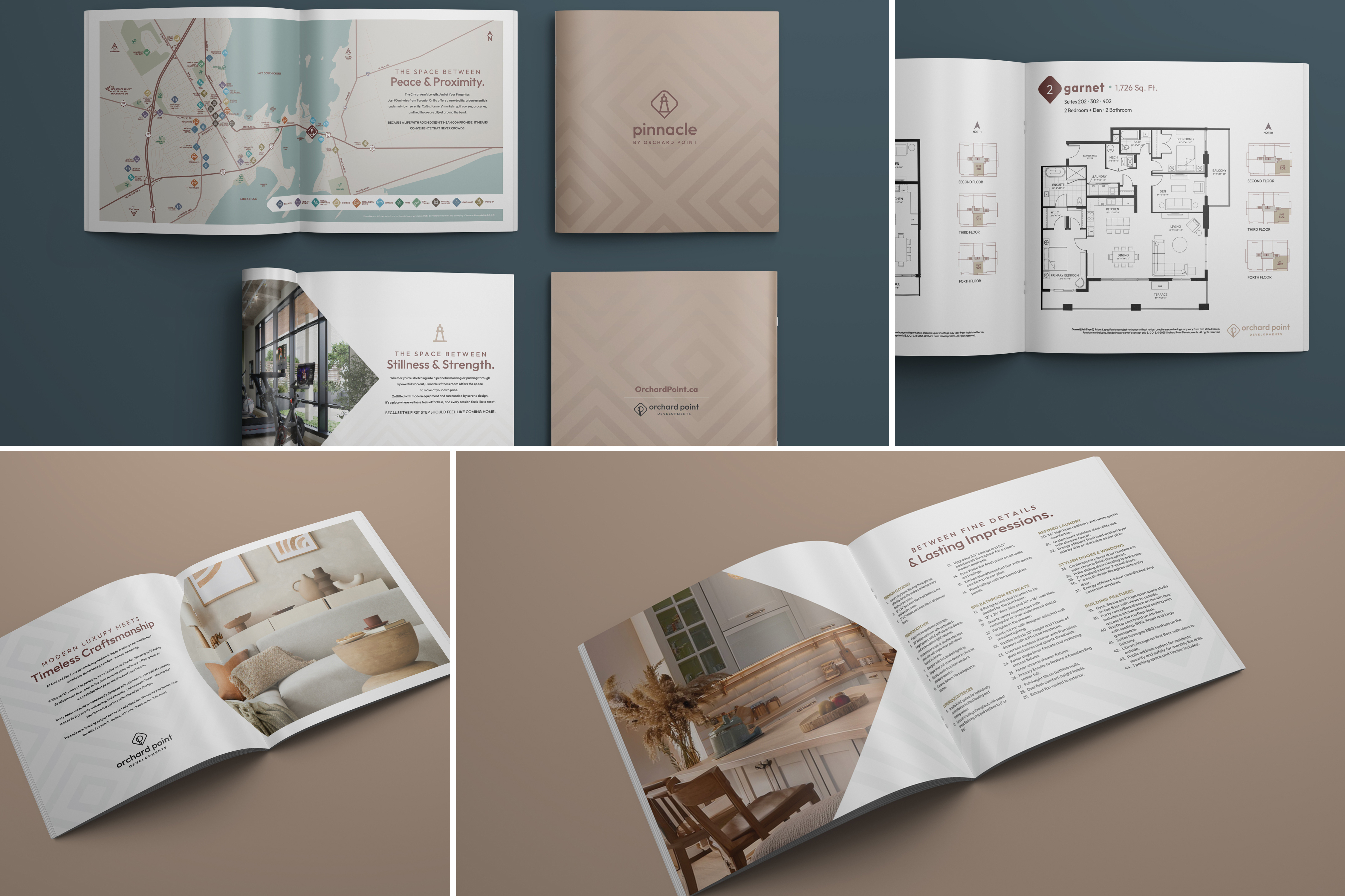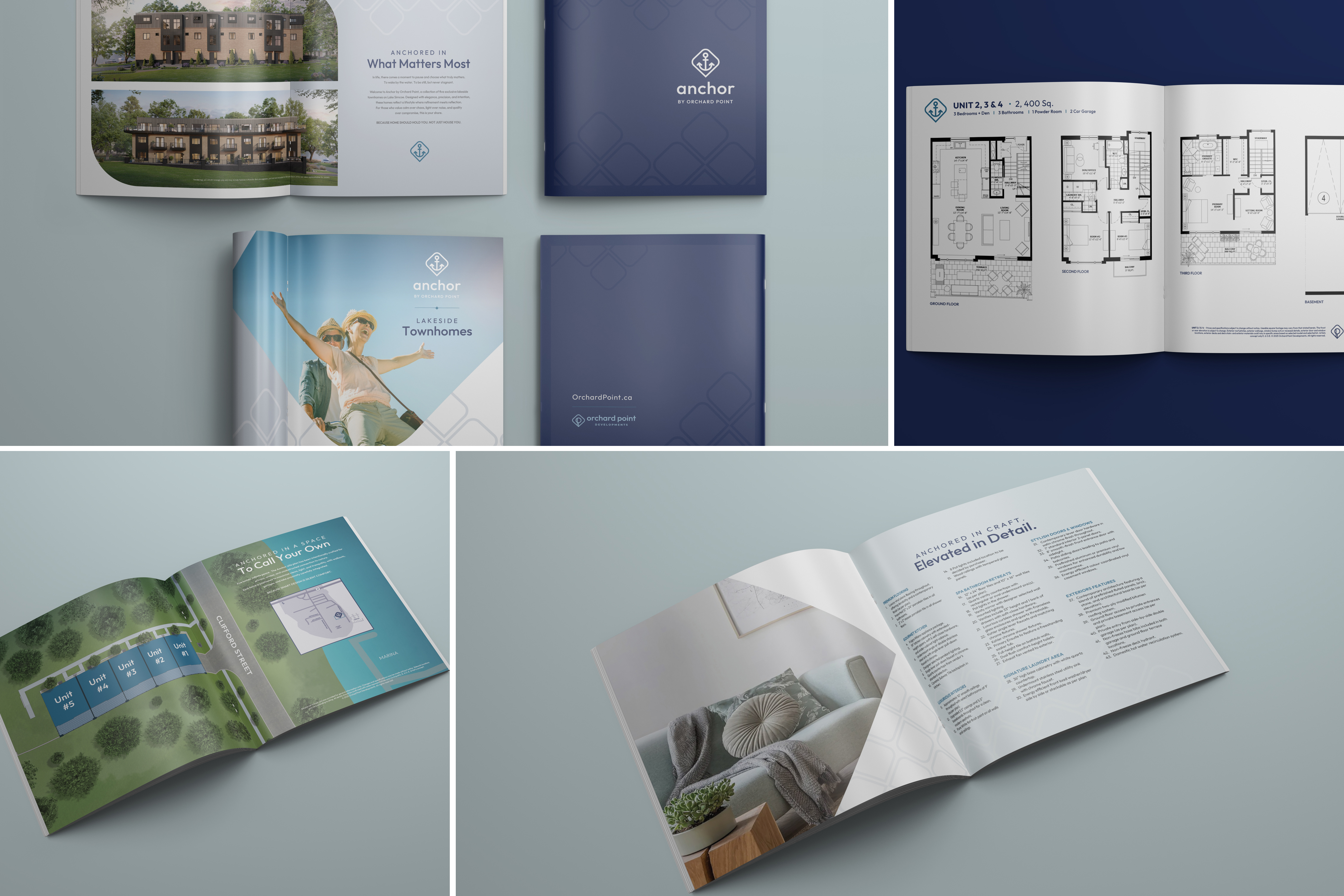 Here's a pdf of the final options I designed for Orchard Point Corporate Brand.Orchard Point were already selling homes and had another agency in Orillia working on the day to day maintenance, the weren't happy with the marketing and asked us to provide detail market analysis which involved tons of research and proposing campaign ideas. It took them 8 months to get back to us and in the meantime they asked us complete their corporate and provide a style guide/ community brochure for the other agency to follow. This is why we worked on the style guide before other collaterals which is very rare occurrence.