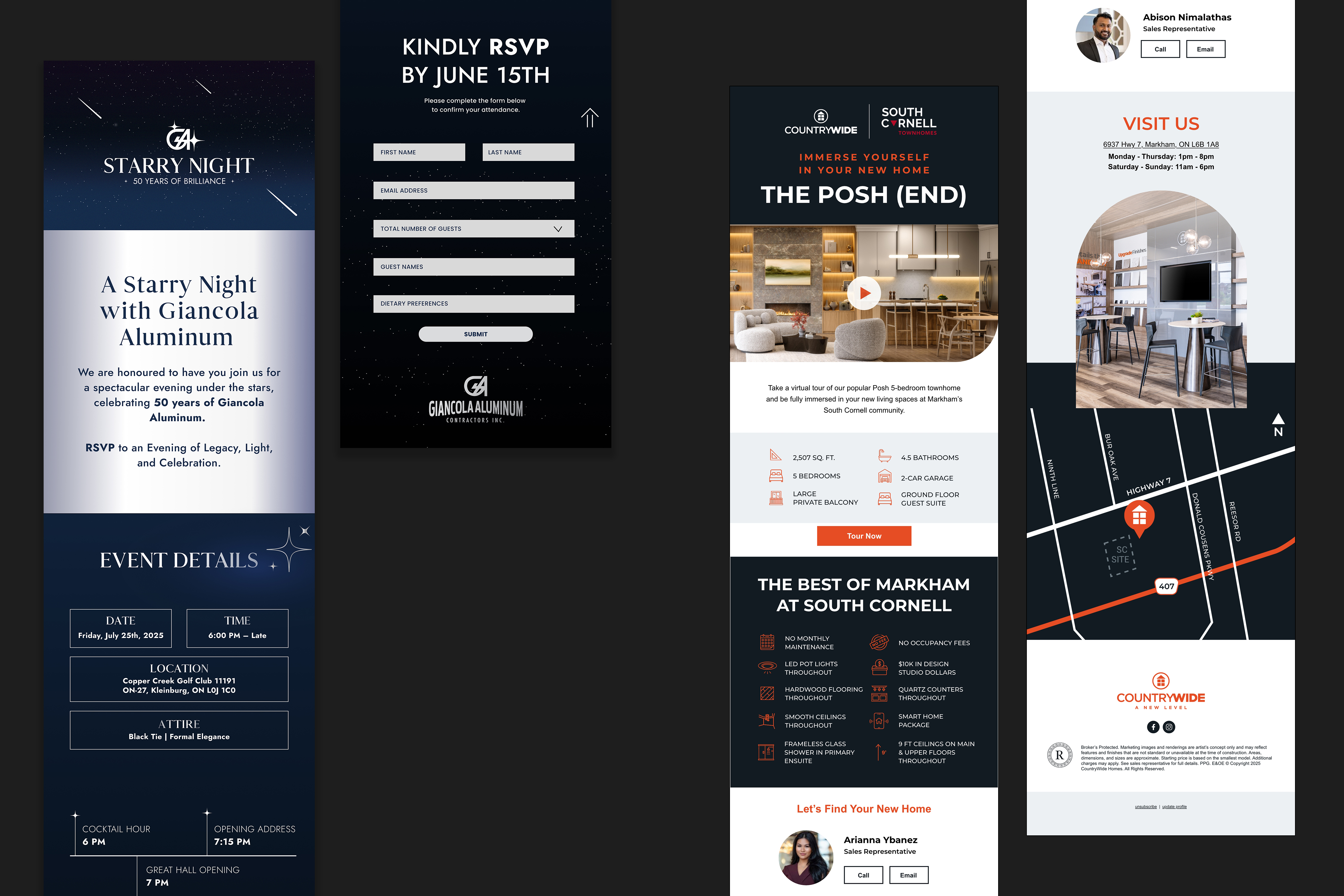 In the past 3 years, I have designed hundreds of production assets and creatives for major clients such as Countrywide Homes, Woodbine Entertainment, Midea, Brookfield, Orchard Point, Regal Crest, Townwood Homes, and Condor Properties, Giancola Aluminum and countless others.